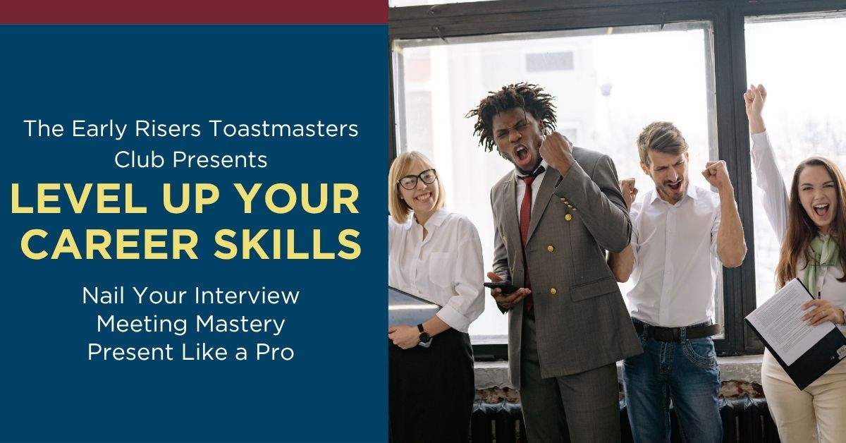 VIRTUAL, MA, UNITED STATES, September 30, 2025 /EINPresswire.com/ -- The Early Risers Toastmasters Club of Worcester, MA, is pleased to announce Level Up Your Career Skills—a free, online workshop—on Thursday, October 9, 2025, from 7:30–9:30 a.m. Eastern designed to help participants sharpen key professional skills including public speaking, meeting leadership, interview presentation, and facilitation skills. Three sessions—Nail Your Interview, Meeting Mastery, and Presenting Like a Pro—will give you tips and tricks for success that you can put into practice right away.Attendees can expect to learn:
