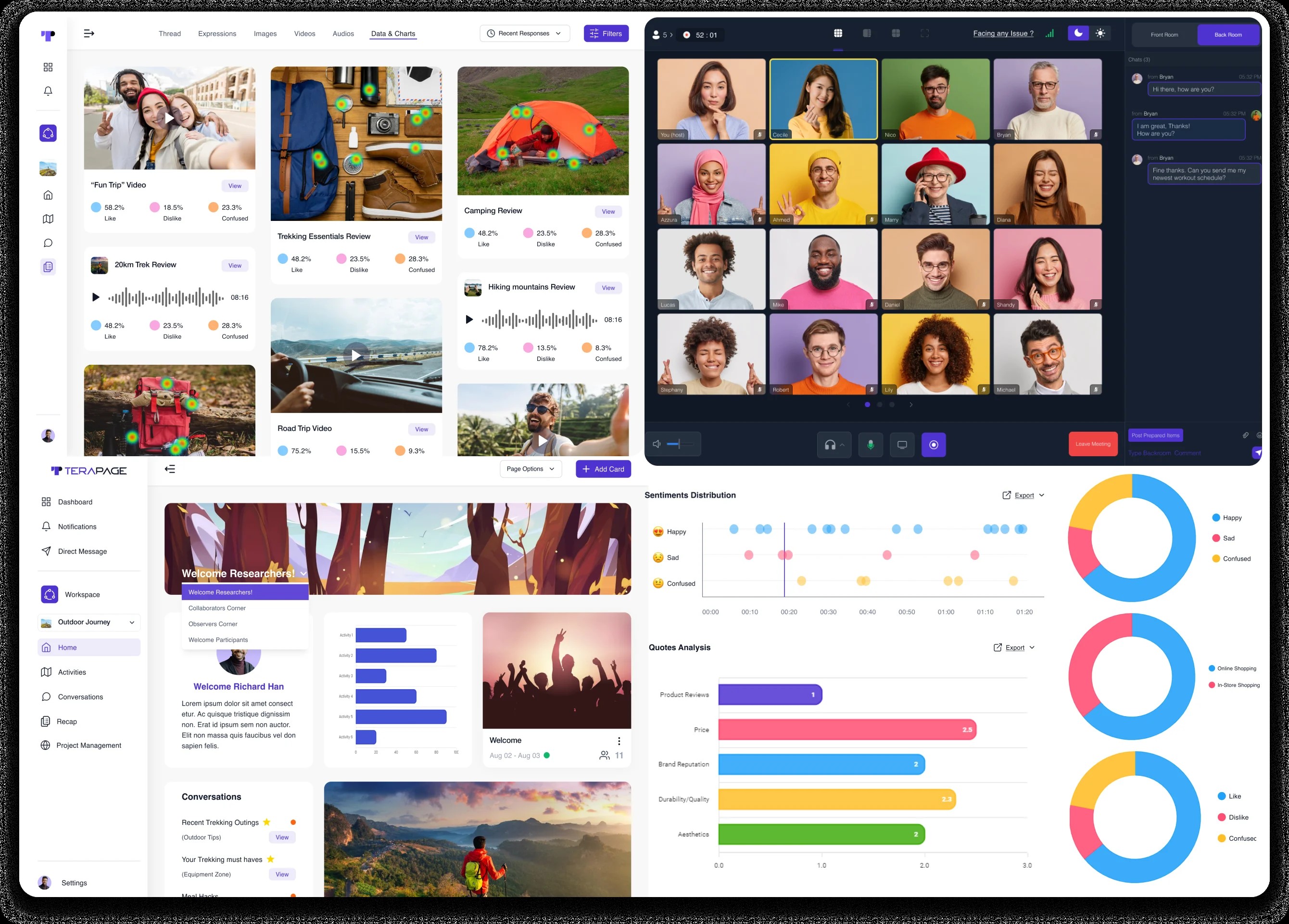 Terapage unified insight platform combining video interviews, dashboards, and real-time sentiment analysis in one ecosystem.