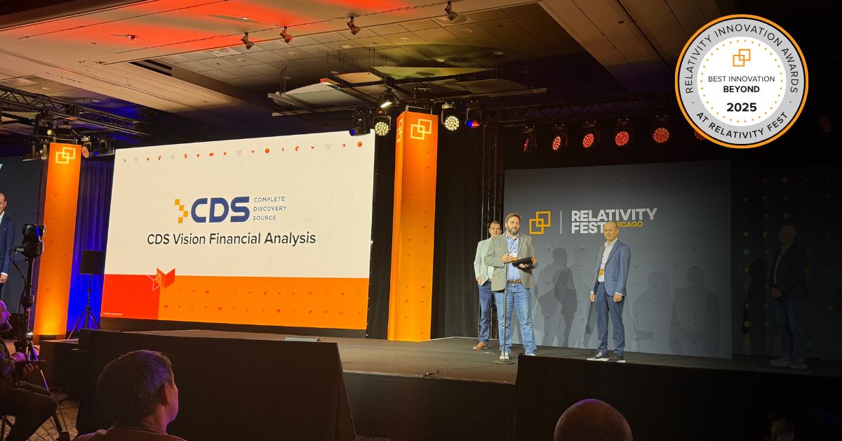 NEW YORK, NY, UNITED STATES, October 20, 2025 /EINPresswire.com/ -- Complete Discovery Source, Inc. (CDS) today announced that its CDS Vision Financial Analysis solution has been named the winner of the Best Innovation: Beyond category at the 2025 Relativity Fest Innovation Awards. With these awards, global legal technology company Relativity recognizes organizations and individuals who are forging new paths to improve the legal industry and its communities. Along with their win in the Beyond category, CDS was a finalist in two other Innovation categories, including Discover for its CDS Vision Search Toolkit solution and Act for CDS Vision AI Empowered DSAR (Data Subject Access Requests) tool.